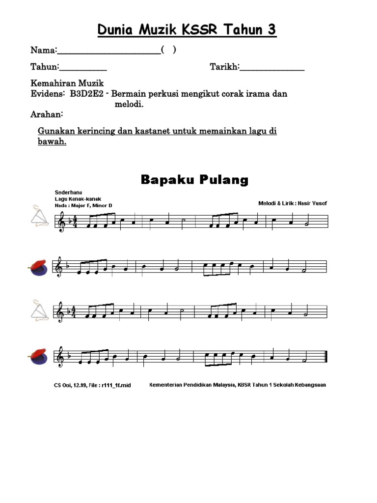 Pendidikan muzik tahun 3 unit 1 : Untuk perhatian, jika terdapat pelbagai versi contoh rph maka ketua panitia dunia. Lagu boneka pendidikan kesenian tahun 3 versi lirik bergerak yang dapat membantu guru dan murid menyanyikan lagu ini dengan mudah dan betul. Soalan dunia muzik tahun 3 kssr. Kompang adalah alat muzik tradisional masyarakat melayu ( ) 2.